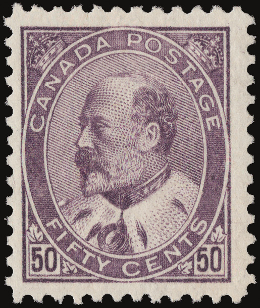 7872 og 95 image1908, King Edward VII, 50¢ purple (Scott 95), o.g., fresh and quite well centered, almost Very Fine.