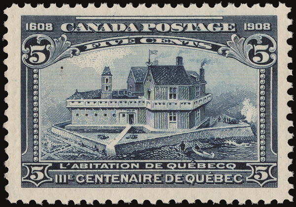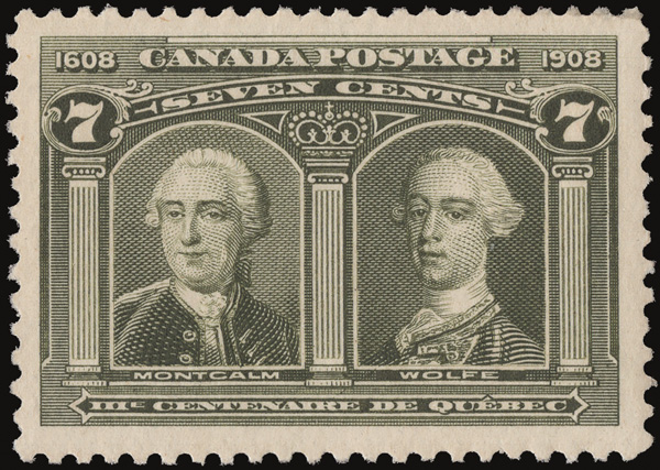 7874 nh 100 image1908, 7¢ Quebec Tercentenary (Scott 100), o.g., never hinged, exceptionally fresh and beautifully centered, Extremely Fine.