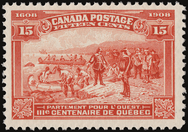 7875 nh 102 image1908, 15¢ Quebec Tercentenary (Scott 102), o.g., never hinged, bright, fresh and nicely centered, Fine to Very Fine.