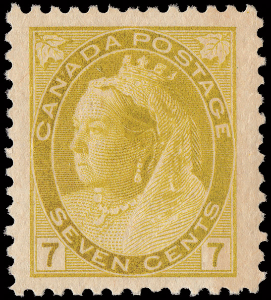 7866 og 81 image1902, Queen Victoria "Numeral", 7¢ olive yellow (Scott 81), a stupendous, large-margined mint example, all but perfectly centered with glowing color, an Extremely Fine Jumbo.
