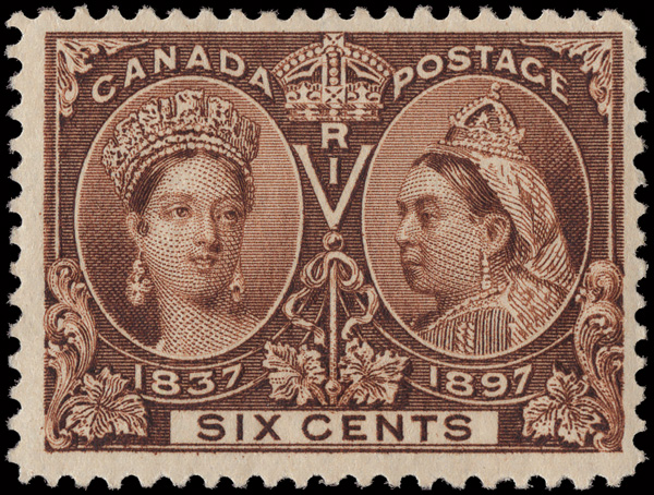 7855 nh 55 image1897, Queen Victoria Jubilee, 6¢ yellow brown (Scott 55), o.g., never hinged, exceptionally fresh and reasonably well centered, Fine to Very Fine.