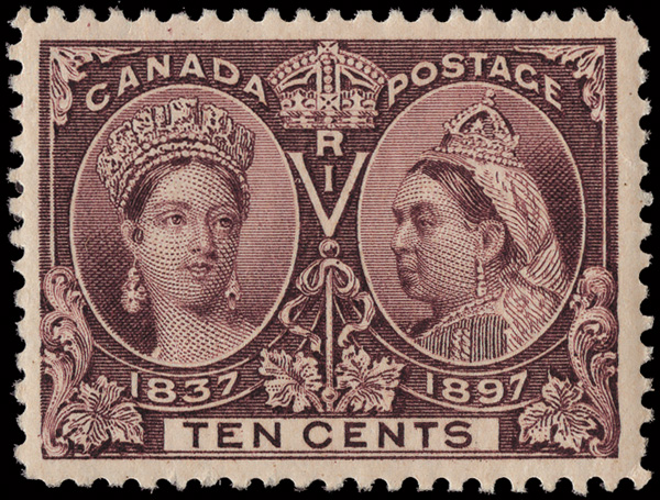7857 nh 57 image1897, Queen Victoria Jubilee, 10¢ brown violet (Scott 57), o.g., never hinged, beautifully centered and post office fresh, Extremely Fine.
