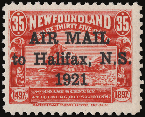7850 og C3f imageAirmail, 1921, 35¢ "Halifax", narrow "AIR MAIL", without period after "1921" (Scott C3f), bright and fresh, Fine to Very Fine.