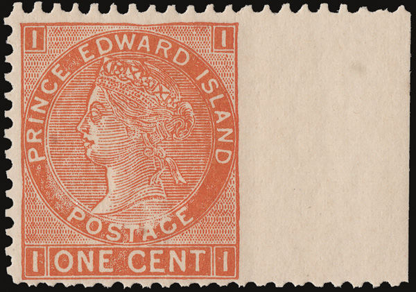 7852 nh 11 var. image1872, 1¢ brown orange, imperf right margin (Scott 11 var.), o.g., never hinged, fresh and well centered, Very Fine.
