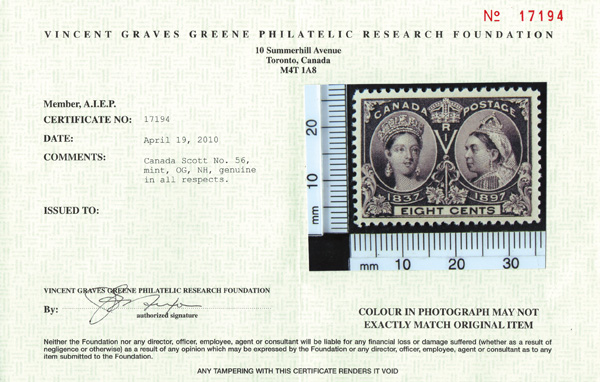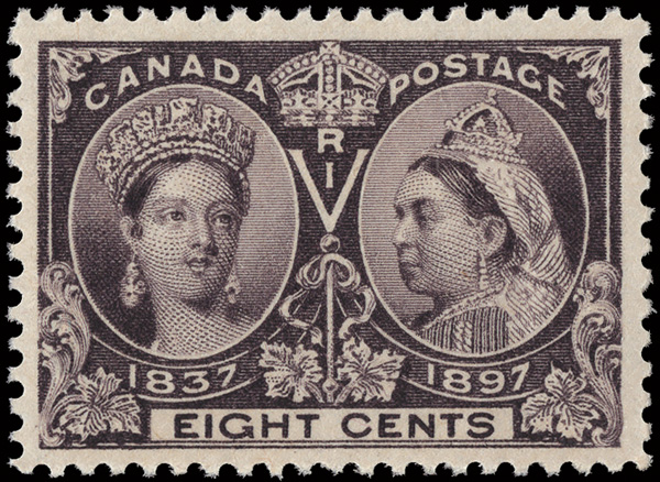 7856 nh 56 image1897, Queen Victoria Jubilee, 8¢ dark violet (Scott 56), o.g., never hinged, fresh and beautifully centered, Very Fine to Extremely Fine, with a 2010 Greene Foundation certificate.