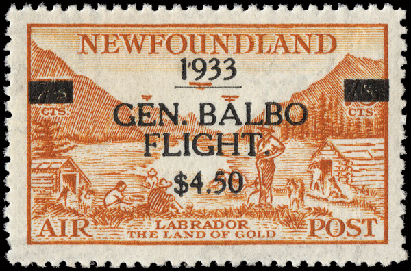 7851 nh C18 imageAirmail, 1933, $4.50 on 75¢ Balbo Flight (Scott C18), position 4 in the setting of 4, o.g., never hinged, post office fresh and beautifully centered, Extremely Fine.