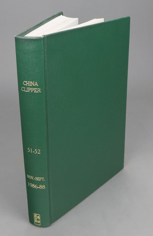 8118 L china clipper 51-52 imageChina Stamp Society, The China Clipper, vols. 51-52, two volumes library-bound in one; pristine. Shipping charges apply - weight 3.6 lbs. (Image) Suggested Bid $6