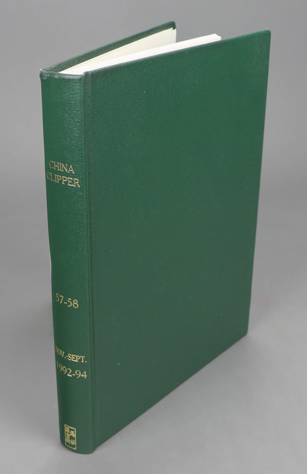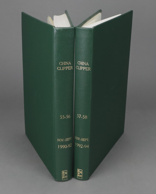 8119 L china clipper 55-58 imageChina Stamp Society, The China Clipper, vols. 55-58, 1990-94, four volumes library-bound in two; pristine. Shipping charges apply - weight 8.4 lbs. (Image) Suggested Bid $6