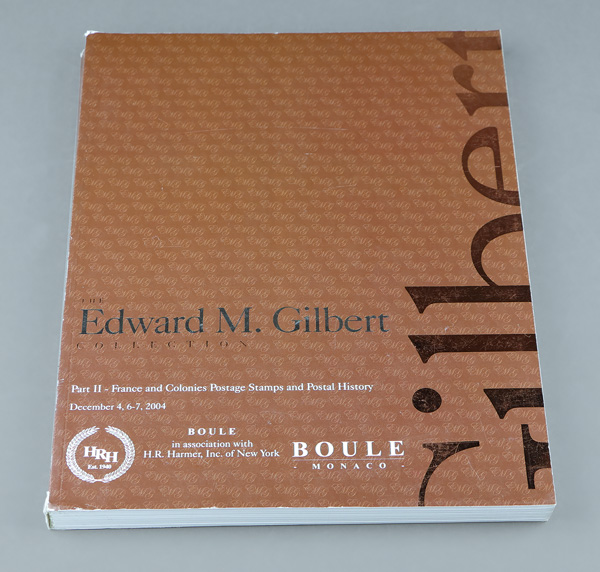 8081 L Harmer Gilbert Part II imageHarmer, The Edward M. Gilbert Collection Part II: France and Colonies Postage Stamps and Postal History, Sale #2951, held Dec. 4 & 6-7, 2004; paperback, 140 pp.; internally clean, relatively light shelf wear. Shipping charges apply - weight 2.2 lbs. (Image) Suggested Bid $6