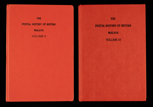 8107 L proud postal history of malaya 2-3 1st imageProud, Edward B., The Postal History of British Malaya, Vol. 2-3, 376, 365 pp., hardcover, 1982-84; Vol. 2 covers Federated Malay States, Vol. 3 discusses Unfederated Malay States; each fully illustrated with priced catalog of all known postal markings, including earliest and latest recorded dates, plus bibliography and index; indispensable books, first edition, now out of print, VF. Shipping charges apply - weight 3.9 lbs. (Image) Suggested Bid $6