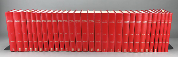 8116 japanese philately imageJapanese Philately, 29 bound volumes in red that will look great in your library; excellent condition and beautifully bound. Shipping charges apply - weight 106 lbs. (Image) Suggested Bid $64