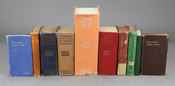 8084 scott 1898//1963 imageScott Stamp & Coin Co, Standard Postage Stamp Catalogue, 10 old-time catalogues for your viewing pleasure; includes Standard for 1898, 1901, 1907, 1925, 1926, and 1930; Specialized 1924, 1930, and 1933; Combined (worldwide) 1963; the 1898 Catalogue has a pink section in the back with "Cheap stamps", they include a Scott #1 and 2 for $4.25. Shipping charges apply - weight 16 lbs. (Image) Suggested Bid $13