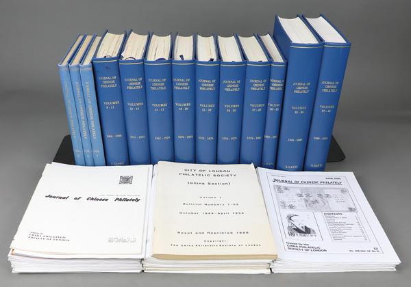 8115 journal of chinese philately imageChina Philatelic Society of London, Journal of Chinese Philately, powerful library consisting of 13 bound volumes from 1957 to 1984 with unbound extending to 1994; series was well cared for and represents a treasure trove of knowledge for the collector enmeshed in this aspect of philately; very useful. (Image) Suggested Bid $52