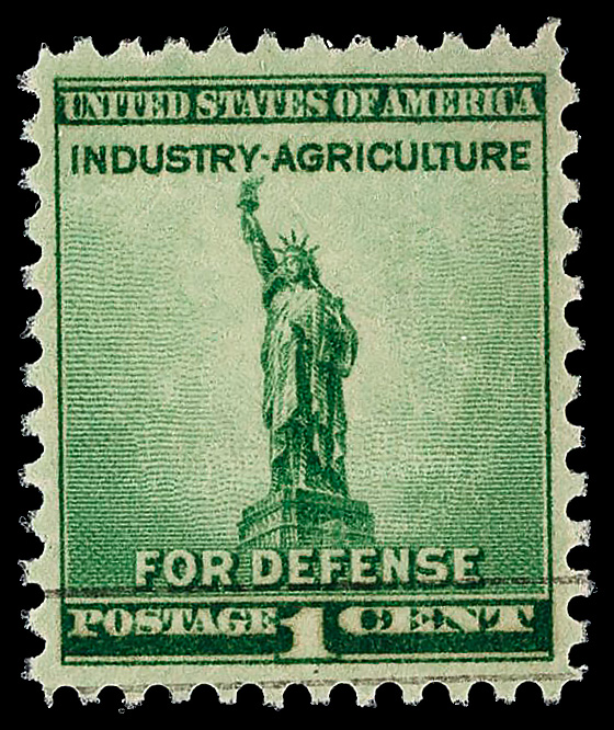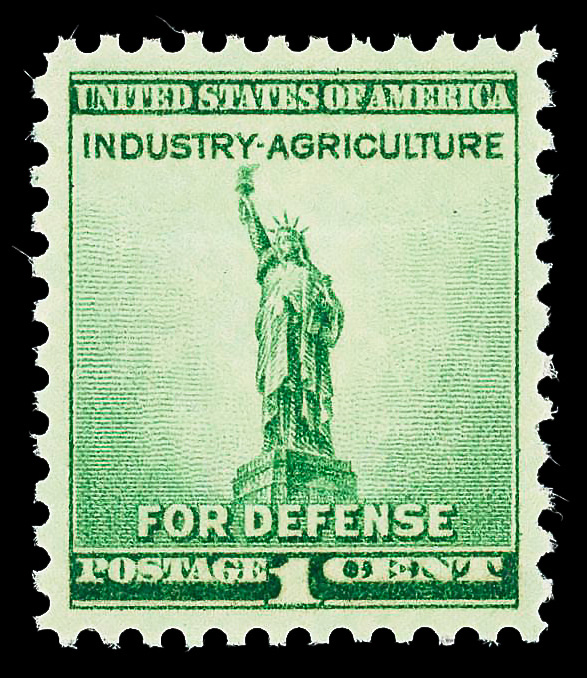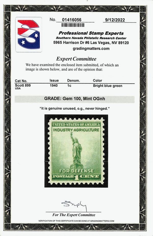 7257 nh 899 image1940, 1¢ Defense (Scott 899), o.g., never hinged, Superb, with 2022 P.S.E. certificate graded GEM 100.