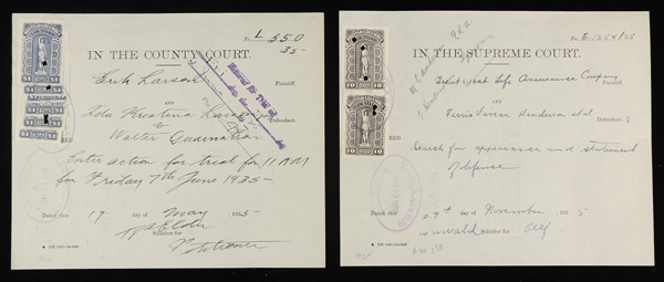 documents, one in a County Court with six $1 Law stamps affixed, and the other with a pair of 10¢ Law stamps on a Supreme Court document; stamps and covers from many nations including Portuguese Guine, Spain, Cameroun, Uruguay, Mali, Hungary,