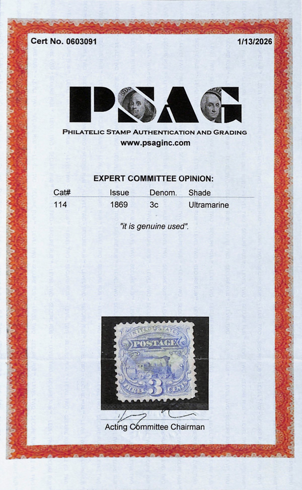 #112, 114 (3, 1 with red cancel), 115 (2), 116 (2), 117 (blue cancel), 118 and 119 (blue cancel); all bright and fresh-faced, apparently sound (though a small fault might be lurking somewhere); a handsome group for collector and dealer alike with the