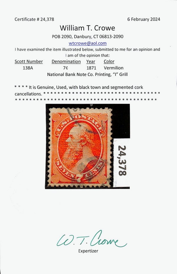 array of cancels, Very Fine. Scott $2,350. (Image)