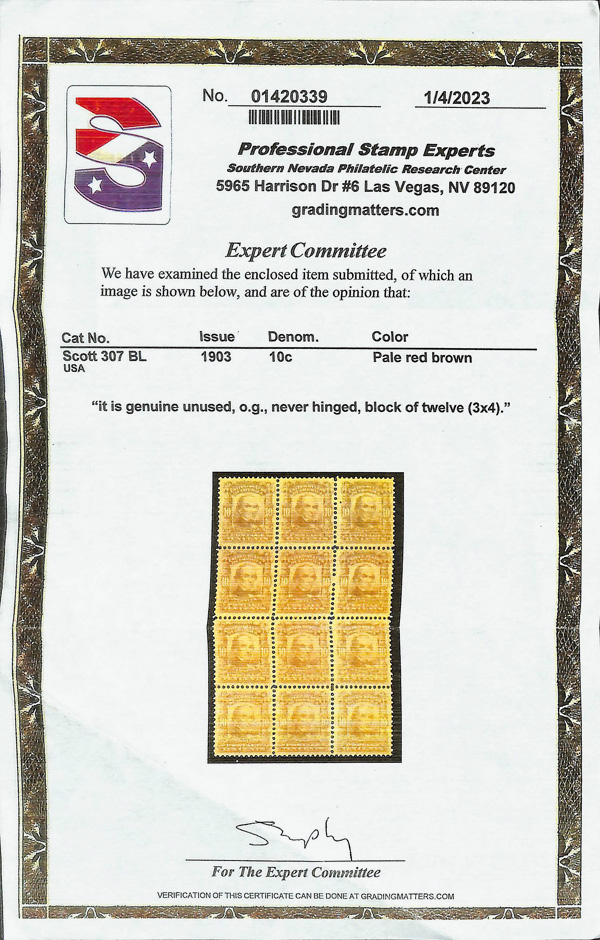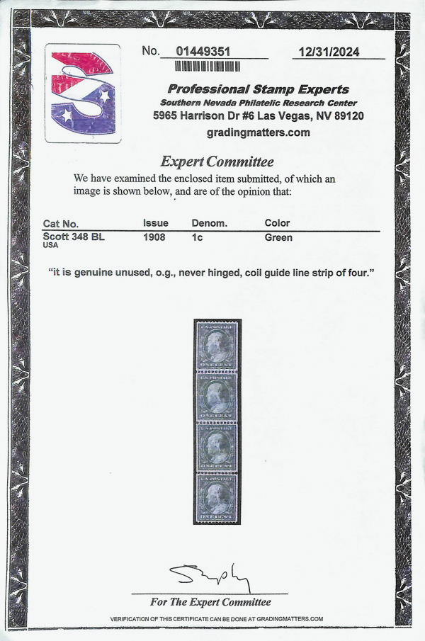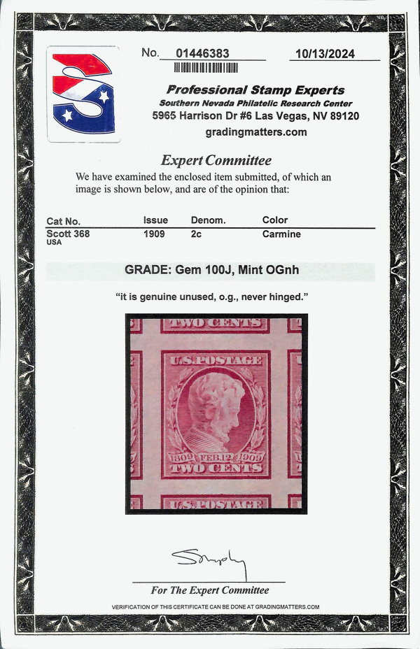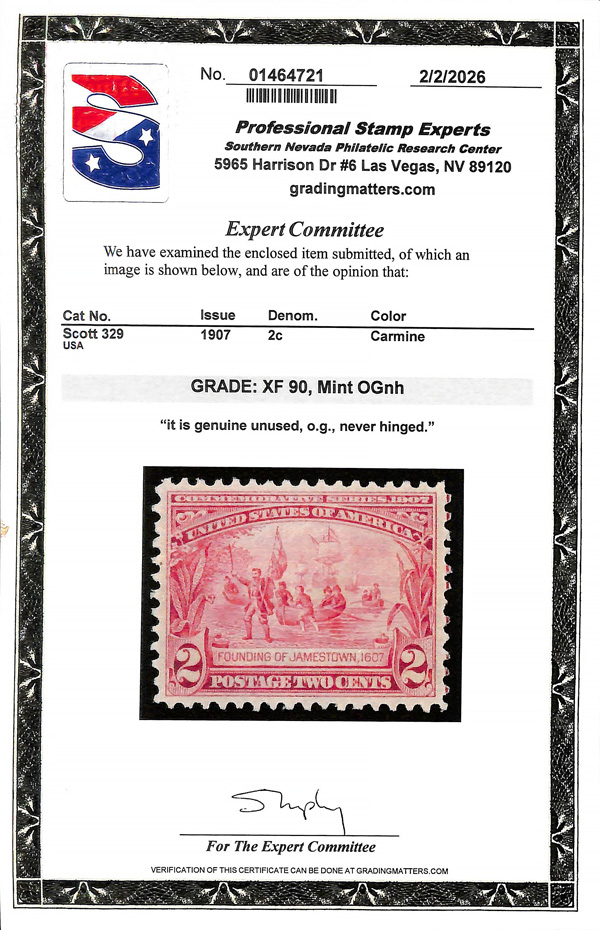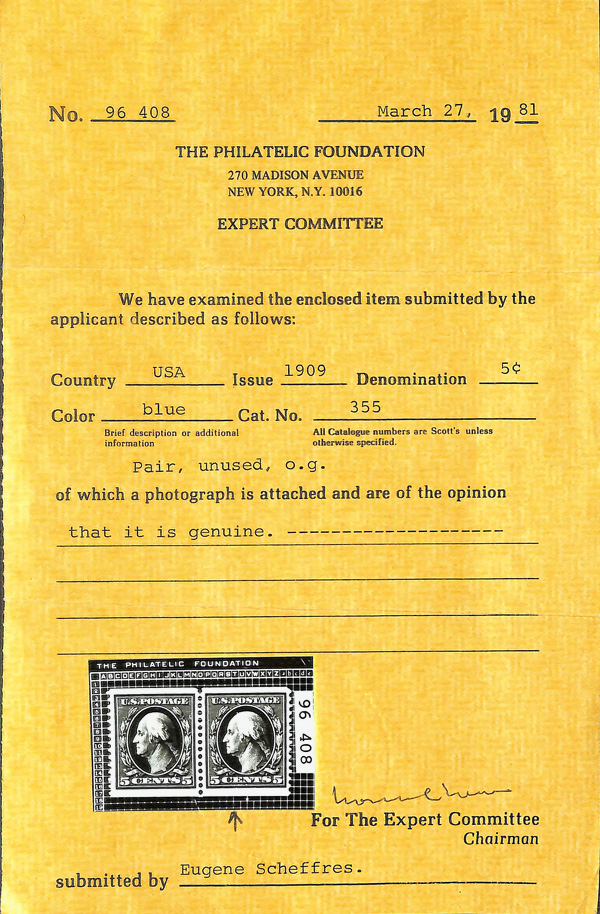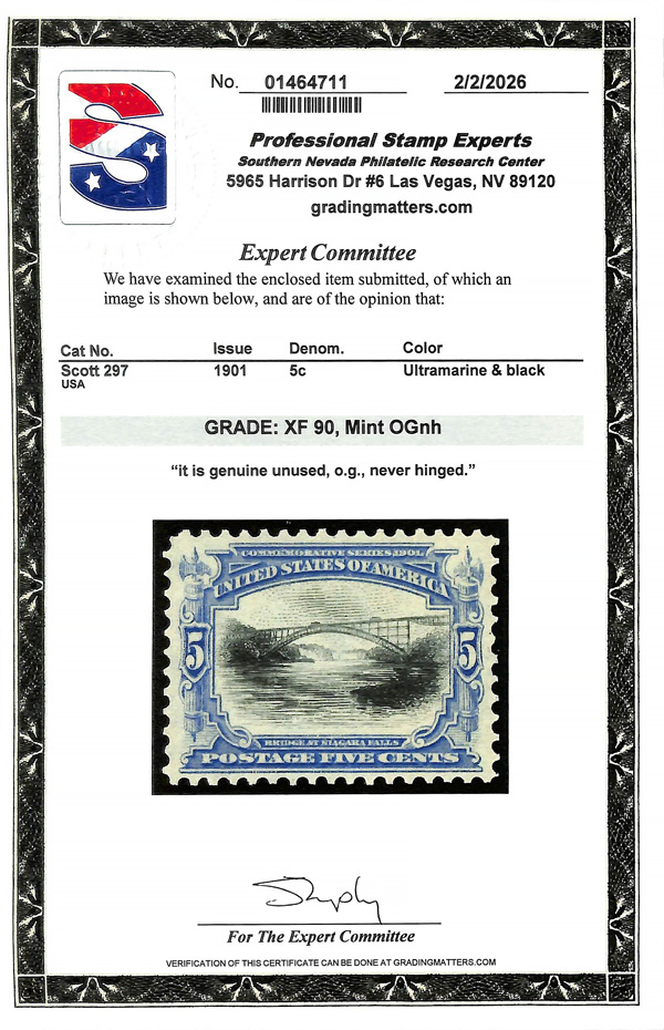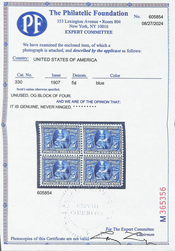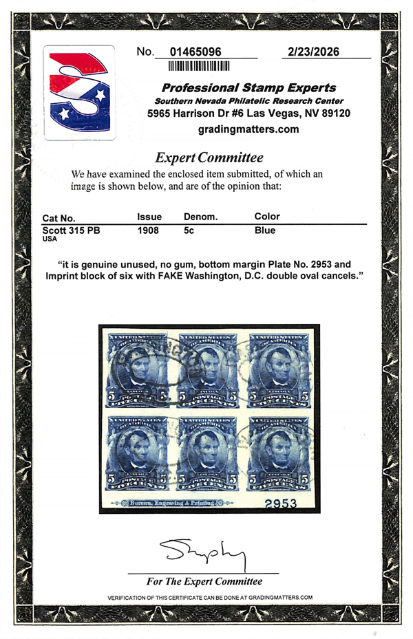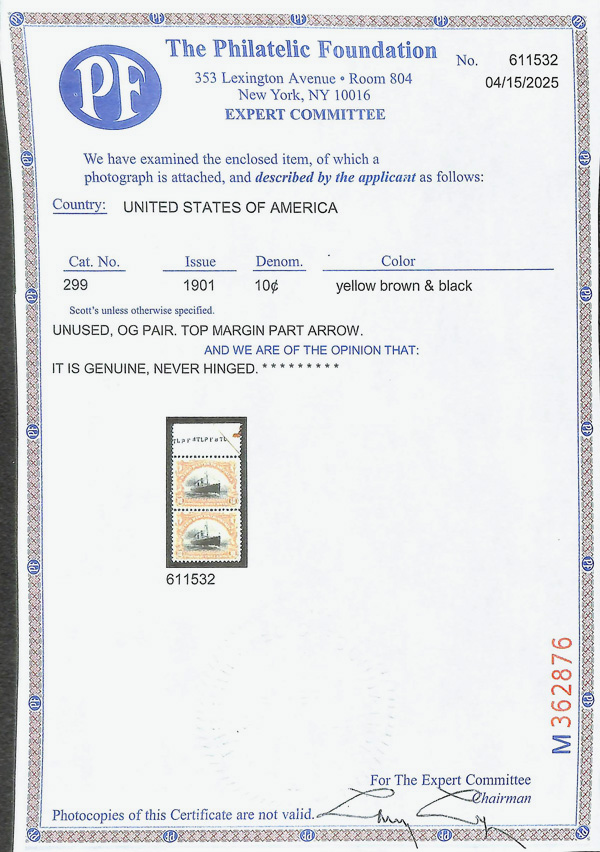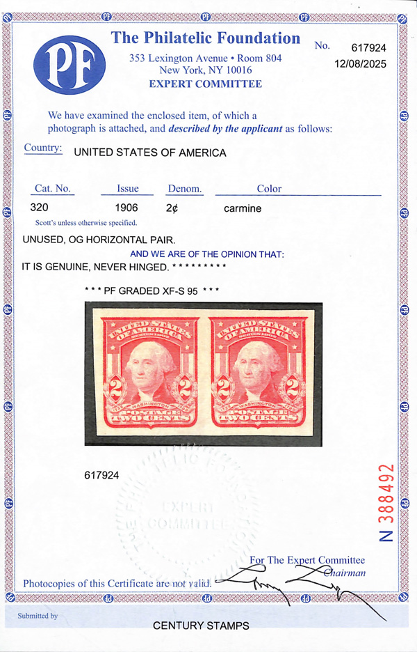 large, balanced margins, Extremely Fine to Superb, a pretty item, with 2025 P.F. certificate graded XF-SUP 95. SMQ XF-SUP 95; $250. Scott Stamp Values $135 as singles. (Image) (Image2)