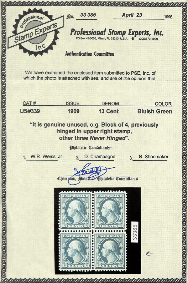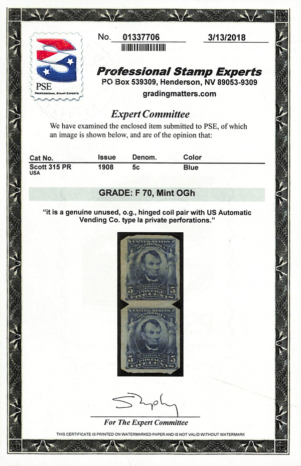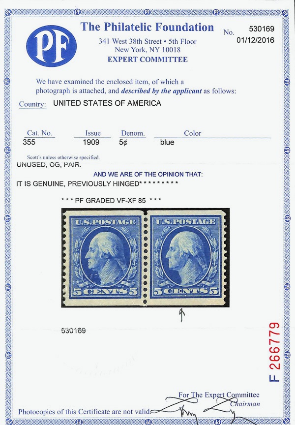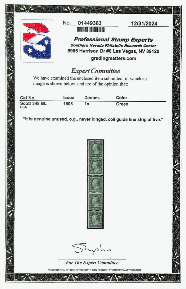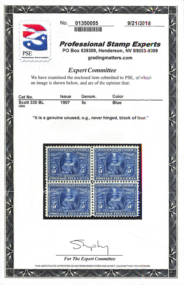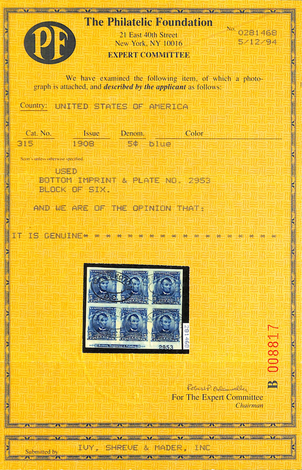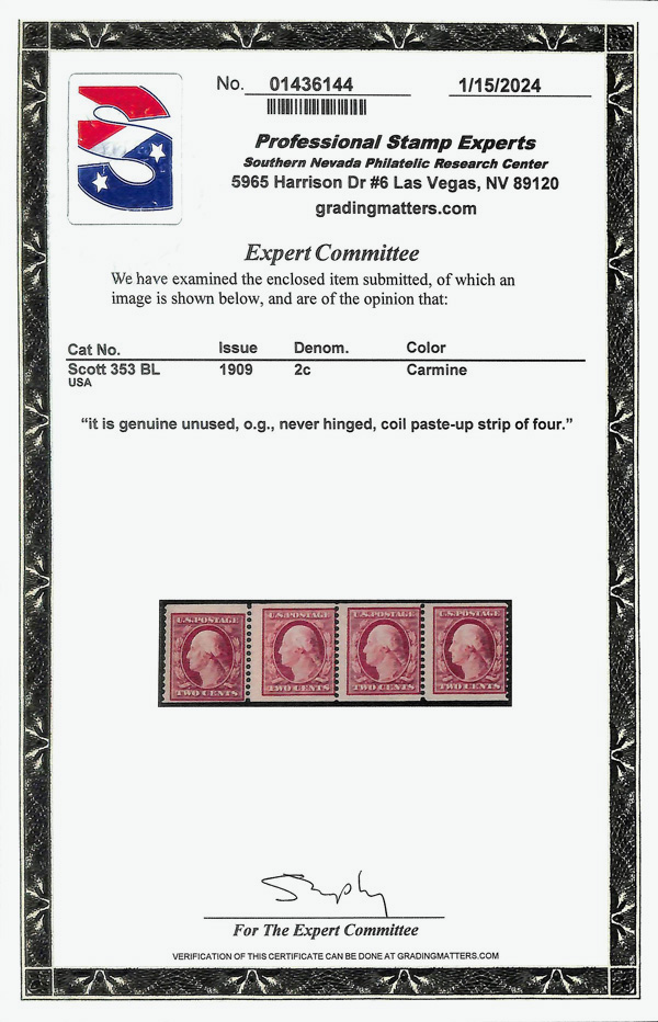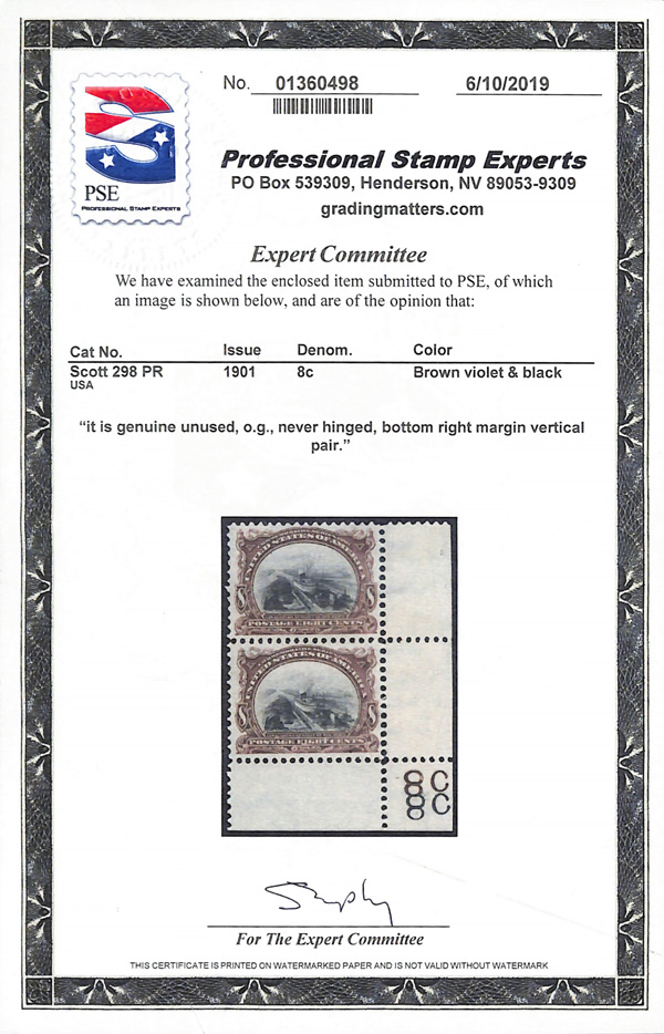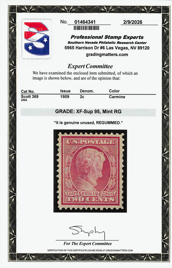 large, balanced margins, Extremely Fine to Superb, a pretty item, with 2025 P.F. certificate graded XF-SUP 95. SMQ XF-SUP 95; $250. Scott Stamp Values $135 as singles. (Image) (Image2)