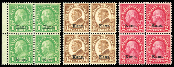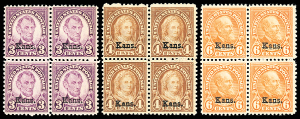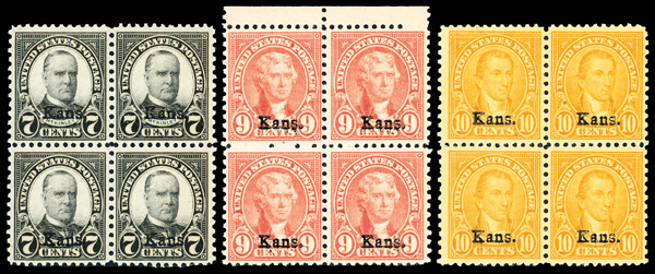 1929, Kans.-Nebr., stock selection (Scott 659//679), a few singles or pairs included, but most blocks of four to