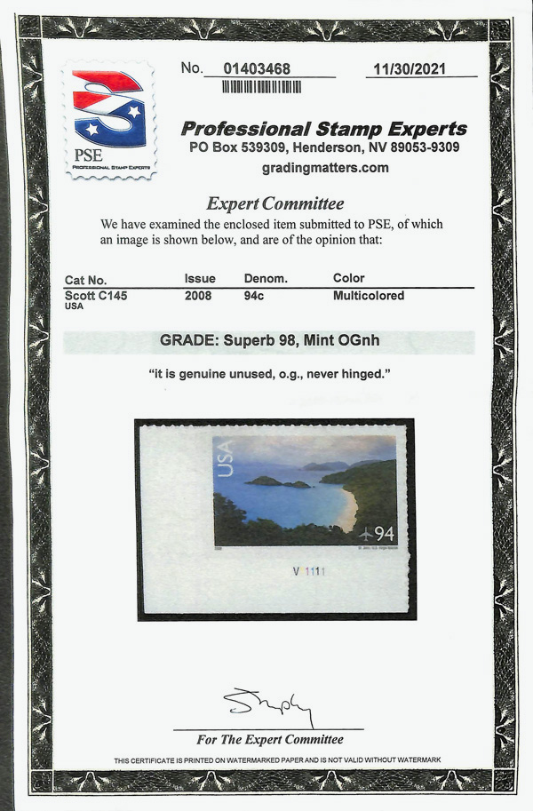 Superb, with 2024 P.S.E. certificate graded XF-SUP 95. SMQ XF-SUP 95; $95. (Image) (Image2)