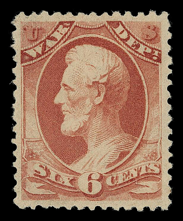 5441 og O117 imageWar Dept., 1879, 6¢ rose red (Scott O117), o.g., very lightly hinged, Extremely Fine, with 2023 P.S.E. certificate graded XF 90.