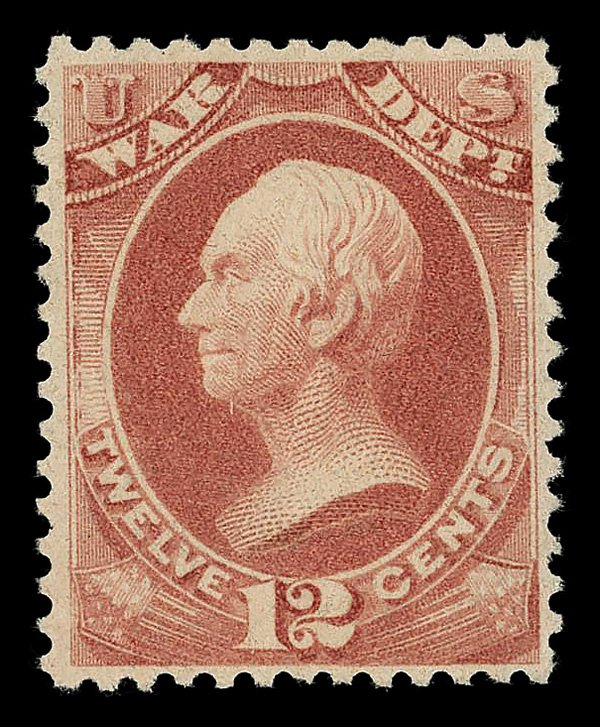 5443 nh O119 imageWar Dept., 1879, 12¢ rose red (Scott O119), o.g., never hinged, Very Fine, with 2019 P.S.E. certificate.