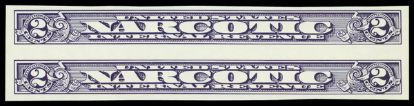 5475 nh RJA80a imageNarcotic Tax, 1963, 2¢ violet, imperf (Scott RJA80a), vertical pair, o.g., never hinged, Very Fine.