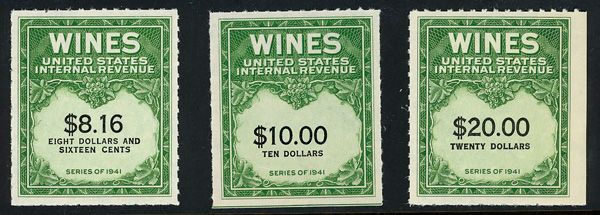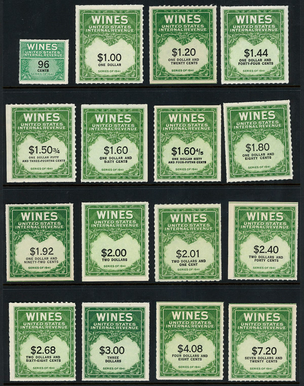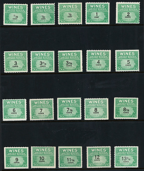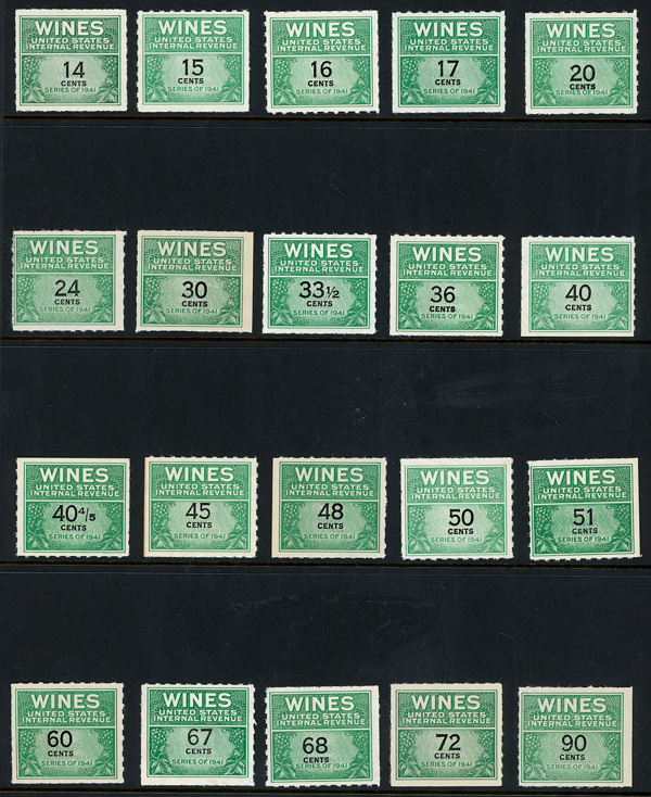 5470 ng RE108//RE203 imageWine Stamps, 1942-54, 1/5¢-$20.00 (Scott RE108//RE203), selection of 59 different, without gum as issued, Fine to Very Fine.