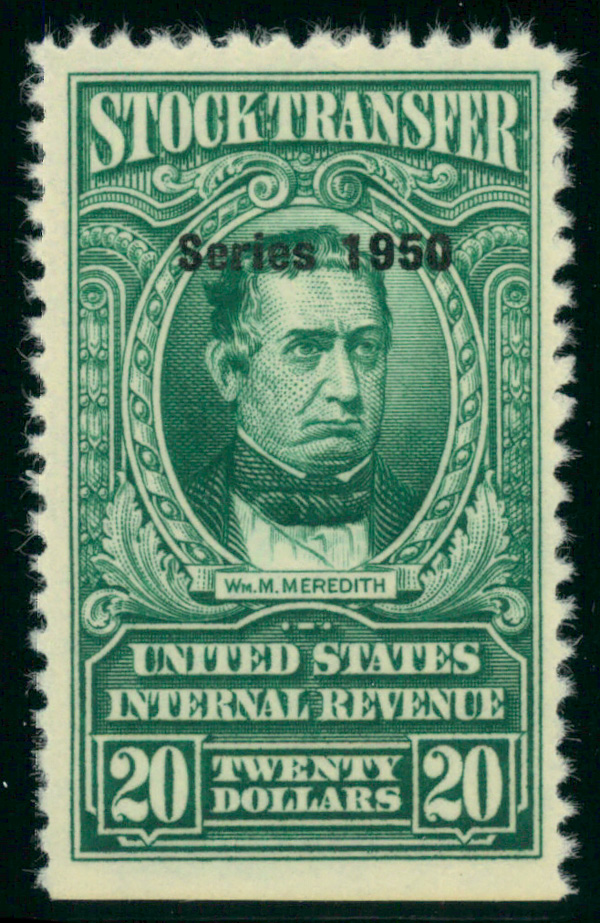 5468 ng RD329 imageStock Transfer, 1950, $20 Meredith (Scott RD329), unused without gum; straight edge at bottom, Very Fine.