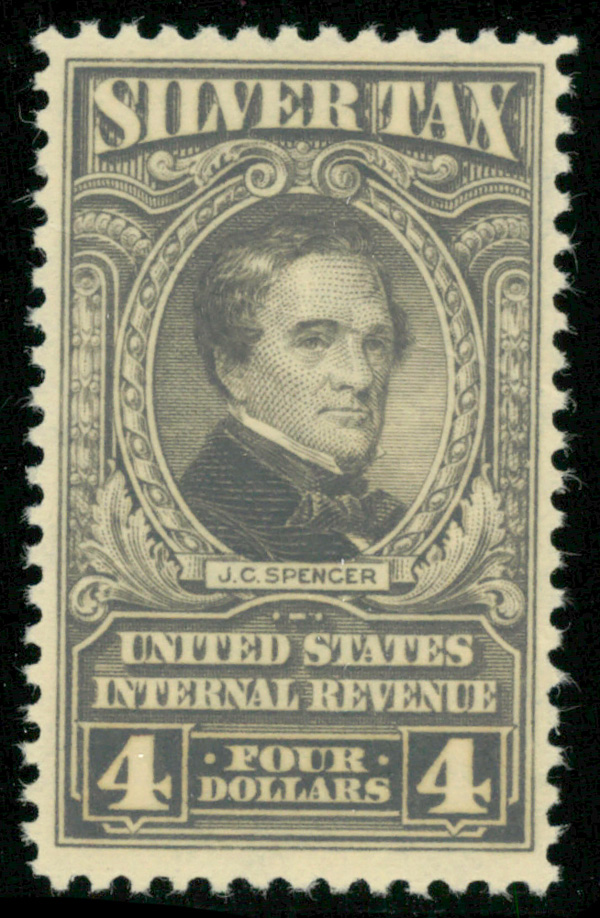 5472 nh RG123 imageSilver Tax, 1944, $4 gray (Scott RG123), o.g., never hinged (noticeable gum crease), Fine to Very Fine.