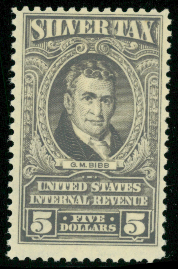 5473 nh RG124 imageSilver Tax, 1944, $5 gray (Scott RG124), o.g., never hinged, Fine.