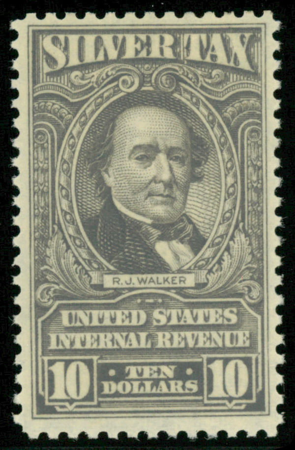5474 nh RG125 imageSilver Tax, 1944, $10 gray (Scott RG125), o.g., never hinged, Very Fine.