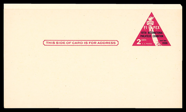 5455 og UX44f imagePostal Card, 1956, 2¢ FIPEX, rose pink & dark violet blue on buff (Scott UX44f), entire, o.g., never hinged, Very Fine.