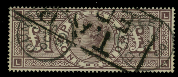 5601 O 110 image1884, Queen Victoria, £1 brown lilac, Imperial Crowns watermark (Scott 110), Fine to Very Fine.