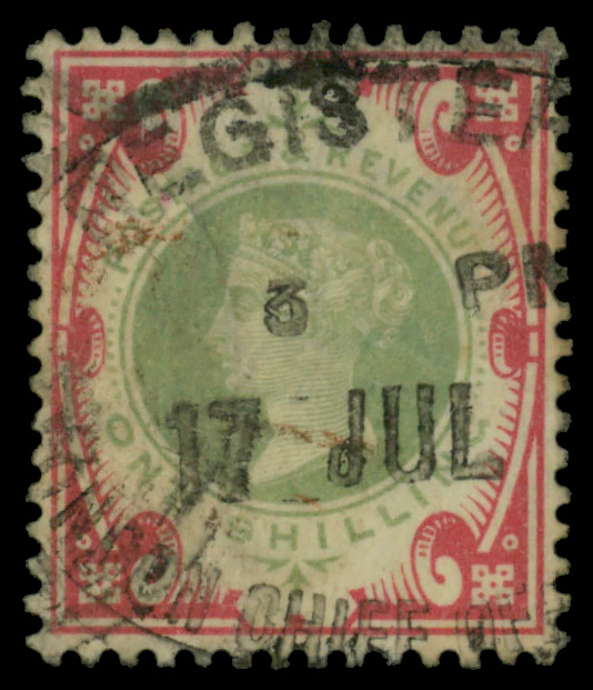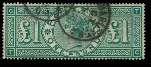 5602 O 124 image1891, Queen Victoria, £1 green (Scott 124), Fine to Very Fine.