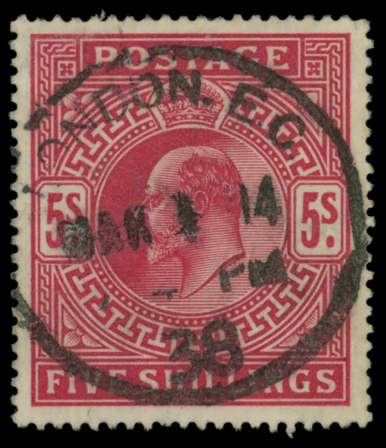 5605 O 140 image1902, King Edward VII, De La Rue printing, 5s bright carmine (Scott 140), Very Fine to Extremely Fine.
