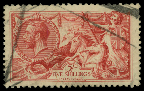 5609 O 174a image1915, King George V "Seahorse", De La Rue printing, 5s bright carmine (Scott 174a), Very Fine.