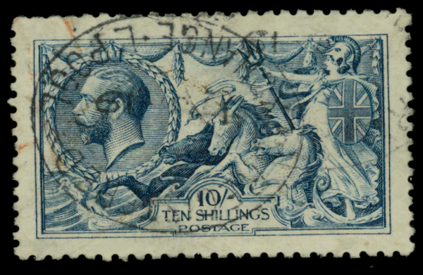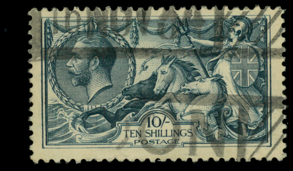 5610 O 175 image1913, King George V "Seahorse", Waterlow printing, 10s indigo blue (Scott 175), Very Fine.