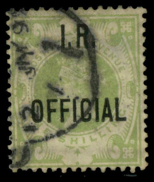 5613 O O12 imageInland Revenue Official, 1889, Queen Victoria, 1s dull green (Scott O12), Fine.