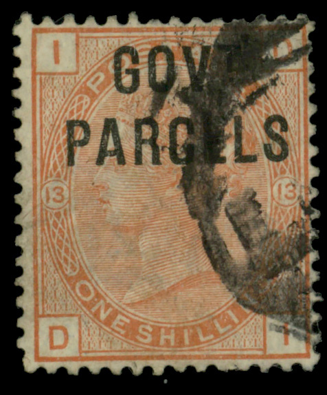 5615 O O30 imageGovt. Parcels, 1883, Queen Victoria, 1s orange brown, plate 13 (Scott O30), Fine to Very Fine.