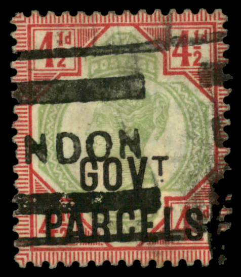 5616 O O33 imageGovt. Parcels, 1892, Queen Victoria, 4½d green & carmine (Scott O33), Very Fine.