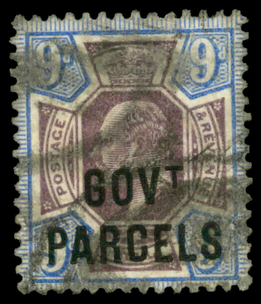 5618 O O42 imageGovt. Parcels, 1902, King Edward VII, 9d dull purple & ultramarine (Scott O42), Very Fine.
