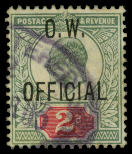 5619 O O51 imageOffice of Works Official, 1902, King Edward VII, 2d yellowish green & carmine red (Scott O51), Fine to Very Fine.