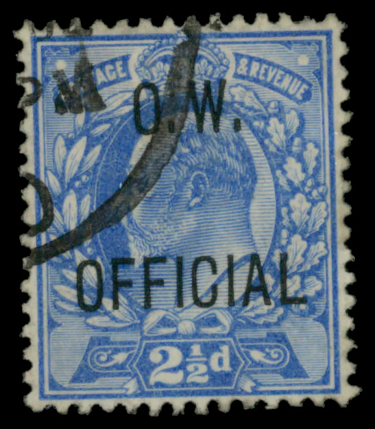 5620 O O52 imageOffice of Works Official, 1902, King Edward VII, 2½d ultramarine (Scott O52), Very Fine to Extremely Fine.