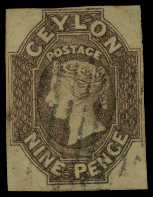 5637 O 9 image1859, Queen Victoria, 9d purple brown, imperf. (Scott 9), Large Star watermark; tiny thin, Fine to Very Fine.