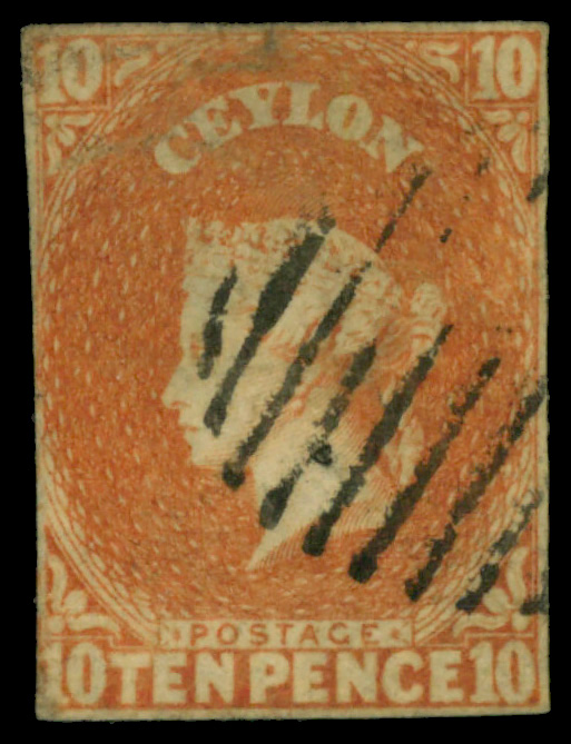 5638 O 10 image1857, Queen Victoria, 10d dull vermilion, imperf. (Scott 10), Large Star watermark, Fine to Very Fine.