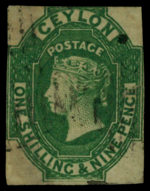 5640 O 12 image1857, Queen Victoria, 1s9d green, imperf. (Scott 12), Large Star watermark; small thins, Fine to Very Fine.