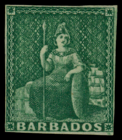 5623 og 5 image185, "Britannia" (½d) green, imperf (Scott 5), small part o.g., Fine to Very Fine.