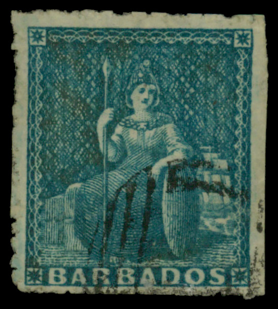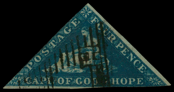 5633 O 2 image1853, Triangular, Perkins Bacon printing, 4d deep blue on slightly blued paper (Scott 2), Very Good.